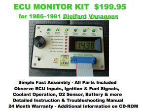 The first addition to our line was the 8385 ECU Monitor Kit (for 1983 - 1985 Digijet models), followed by our Battery Saver Kit, and finally our Throttle Position (TPS) Switch Kits. Two plug and play Shop Systems are also available; The 8691 Shop System (for Digifant FI Systems), and the 8391 Shop System, which adds troubleshooting capability for the 83 1/2 - 85 Digijet FI vehicles. These Shop Syatems are designed for Vanagon repair shops, or folks that simply choose not to do any type of soldering and testing. Our customer can provide either one or two functional ECUs, or we can provide them at our cost (currently $275 USD). Either way, we wire and test the ECUs prior to combining them with the Monitor electronics, when they are retested in one or both of our road test Vanagons.